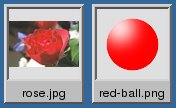 $ montage -background #336699 -geometry +4+4 rose.jpg red-ball.png montage.jpg